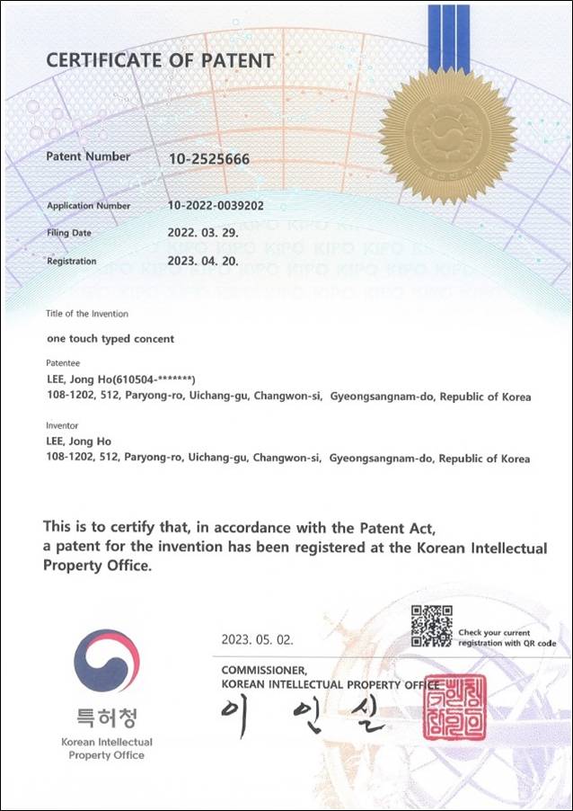 갤러리 카테고리 13) [20-Apr-2023] Korean Patent Registration Registration date 2025-09-01 No. 10-2525666 prev 12) [04-Apr-2023] ISO 14001:2015 Environmental Management System Certification next 14) [16-Aug-2024] Korean Patent Registration List