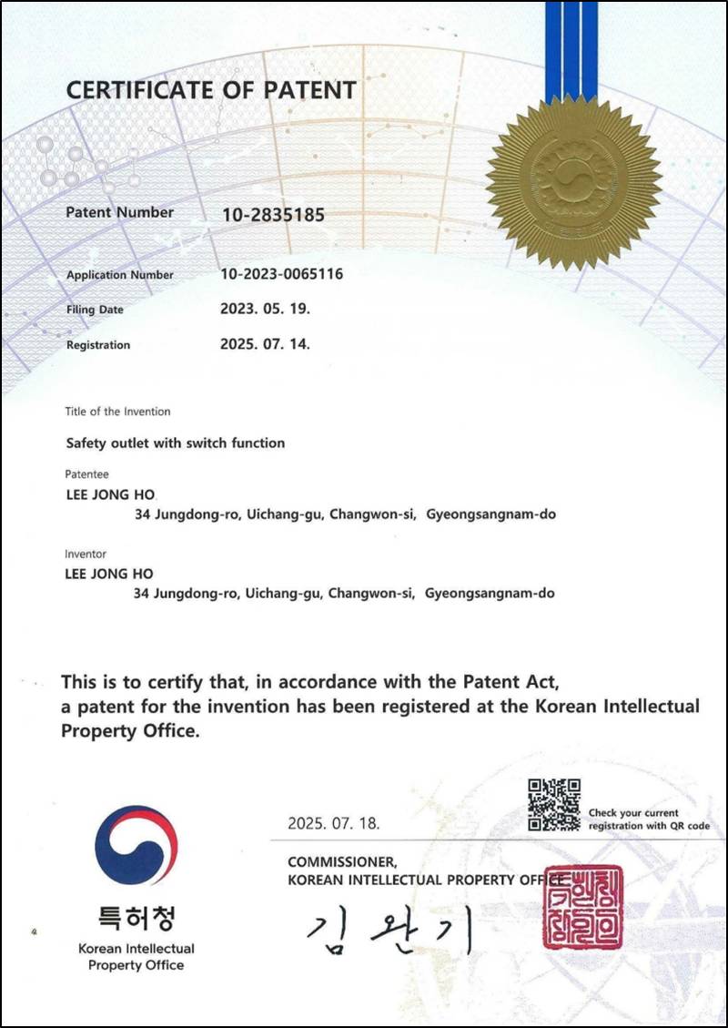 갤러리 카테고리 16) [14-Jul-2025] Korean Patent Registration Registration date 2025-09-01 No. 10-2835185 prev 15) [27-May-2025] Vietnam Patent Registration next 17) [2021-04] GOOD LIFE won the "Gold Award" at Swiss Geneva International Exhibition of Inventions List