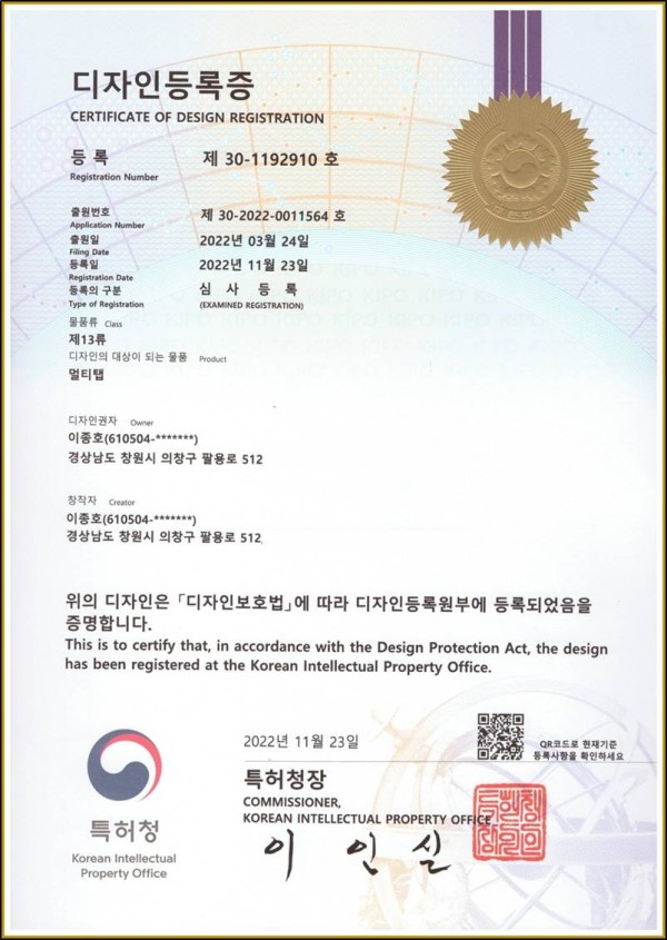 갤러리 카테고리 10) [2022年11月] 韓国特許登録 (DESIGN) 登録日 2025-09-01 登録番号 : 30-1192910 以前の文 09) 2022 グッドライフベンチャー企業認証 次の文 11) [2023年4月] ISO 9001:2015 品質経営システム認証 目録