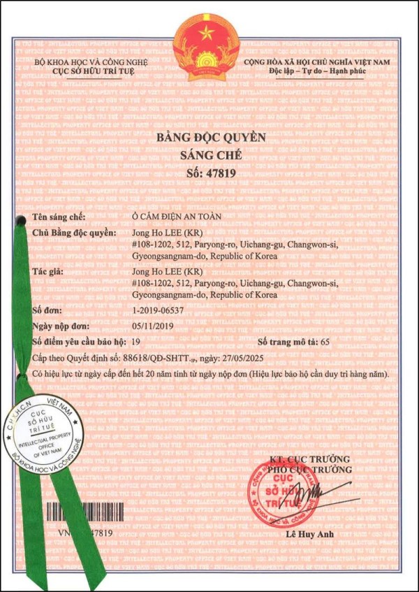갤러리 카테고리 15) [2025年5月] ベトナム特許登録 登録日 2025-09-01 登録番号 : PAA19-0073-VN0 以前の文 14) [2024年8月] 韓国特許登録 (DESIGN) 次の文 16) [2025年7月] 韓国特許登録 目録