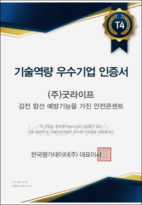 갤러리 카테고리 08) [2022-10-24] 굿라이프_기술역량 우수인증 획득 등록일 2025-09-01 기술수준: T4 이전글 07) [2022-09-27] 일본-7148712 다음글 09) [2022-11-01] 2022 굿라이프 벤처기업 인증 목록